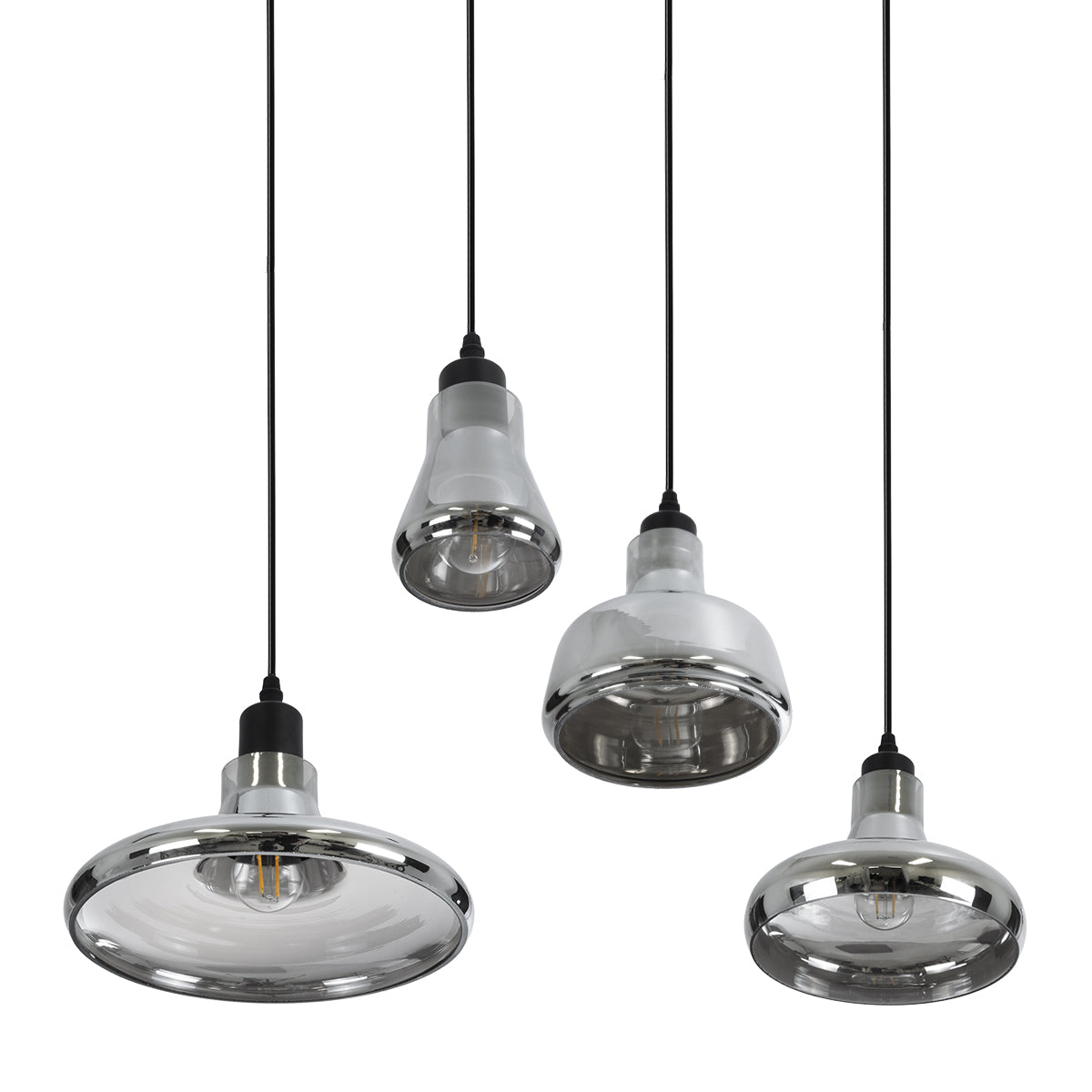 GLOBOSTAR® FEMINE 01011 Μοντέρνο Κρεμαστό Φωτιστικό Οροφής με Ντουί 4 x E27 AC 220-240V IP20 - Γκρι & Μαύρο - Μ70 x Π70 x Y24.5cm - Σετ 4 Τεμαχίων