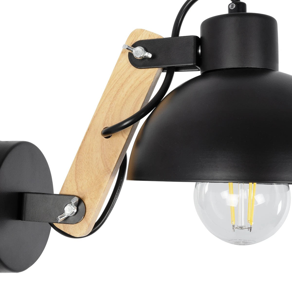 GloboStar® GRANT 00902 Μοντέρνο Φωτιστικό Τοίχου Απλίκα Μονόφωτο Μαύρο με Ξύλινο Βραχίονα Μεταλλικό Φ15 x Y12cm