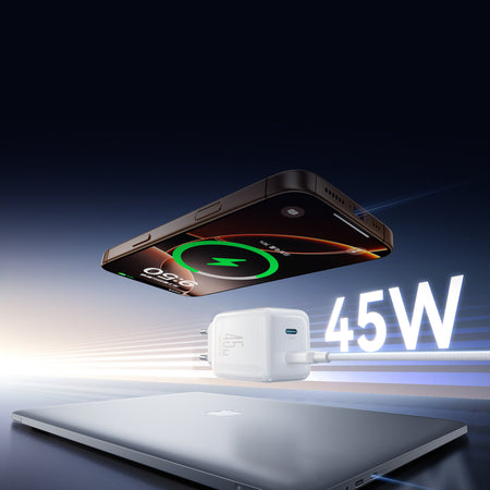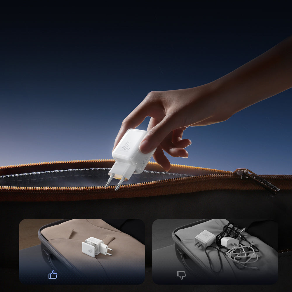 Παρέχει ισχύ 45W σε compact σχεδιασμό, επιτρέποντας στον φορτιστή να χωρά άνετα σε τσέπη, organizer ή τσάντα ταξιδιού.