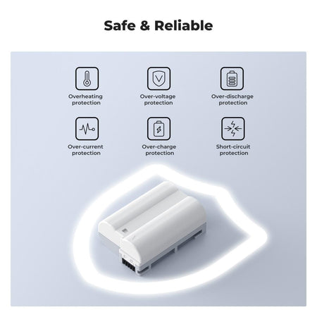 Μπορεί να φορτιστεί μέσω φορτιστή τοίχου USB, φορτιστή αυτοκινήτου ή power bank, εν τω μεταξύ, είναι συμβατό με φορτιστή EN-EL15C. Είναι ασφαλές και αξιόπιστο.