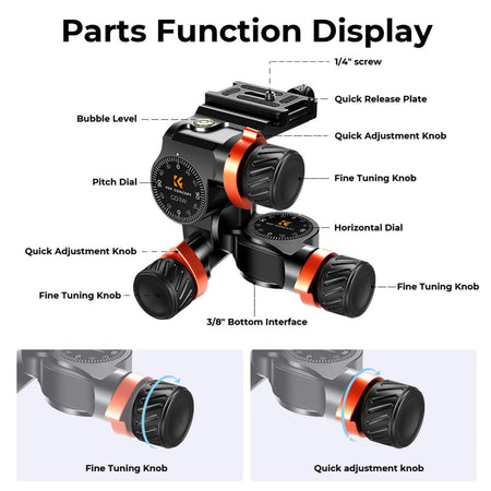 Μέγιστη ακρίβεια: Αυτή η κεφαλή με γρανάζια είναι εξοπλισμένη με μικρομετρικά πόμολα υψηλής ακρίβειας για έλεγχο της ανεξάρτητης κίνησης με 3 τρόπους.
