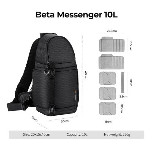 Η μαύρη τσάντα KF13.141 φωτογραφικής μηχανής σειράς Beta από την K&F Concept χωράει σώμα κάμερας και δύο φακούς, καθώς και επιπλέον εξοπλισμό και αξεσουάρ. Το εσωτερικό έχει ρυθμιζόμενα διαχωριστικά για να χωρέσει τον εξοπλισμό σας. Μπορείτε να έχετε γρήγορη πρόσβαση στον εξοπλισμό σας από το πίσω και το πλάι. Το αδιάβροχο εξωτερικό βοηθά να διατηρείτε τον εξοπλισμό σας στεγνό και ασφαλή σε βρεγμένες ή δύσκολες συνθήκες. Ένας χοντρός, φαρδύς ιμάντας με χιαστί κάνει τη μεταφορά αυτού του πακέτου εύκολη και άνετη.