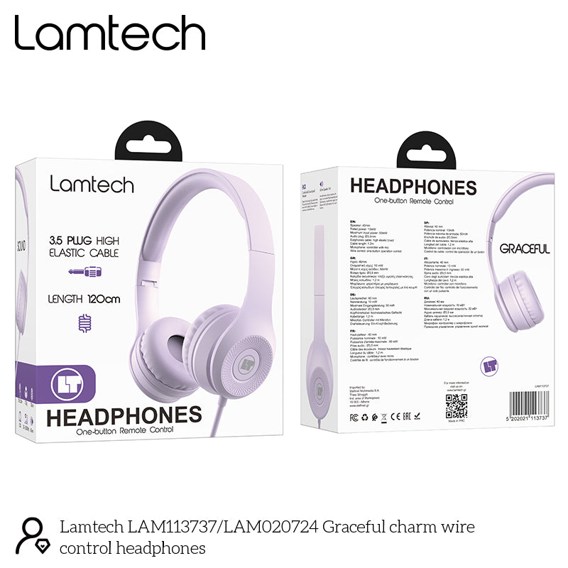 Εισαγωγή των ακουστικών LamTech Extra Bass Stereo με Mic σε ζωντανό μωβ, όπου το στυλ συναντά τη λειτουργικότητα για μια εντυπωσιακή εμπειρία ήχου.