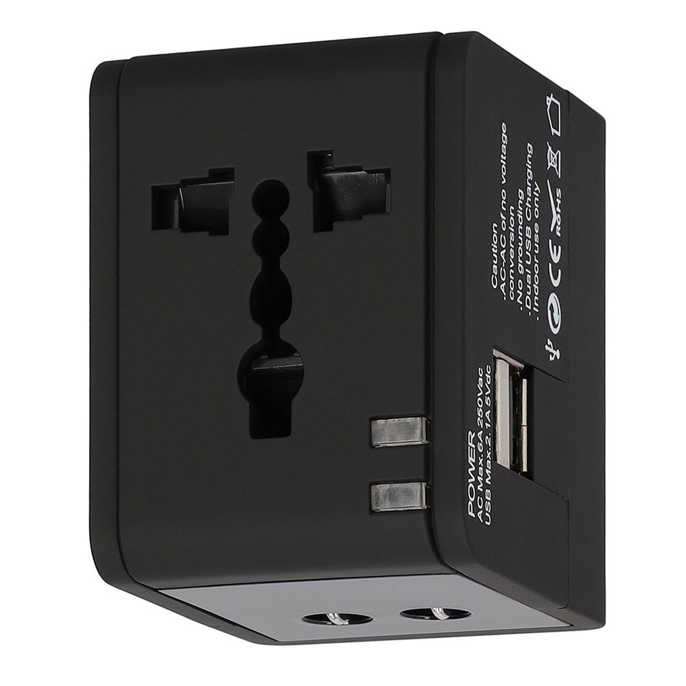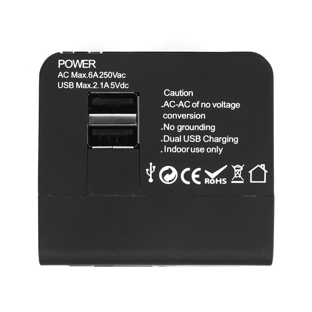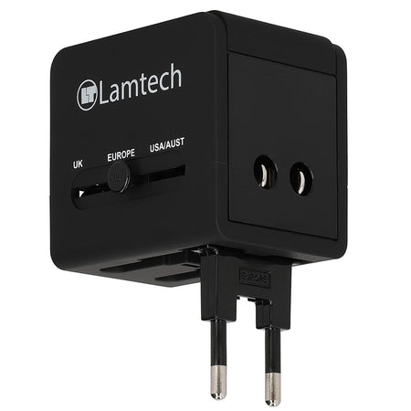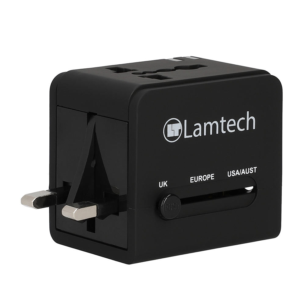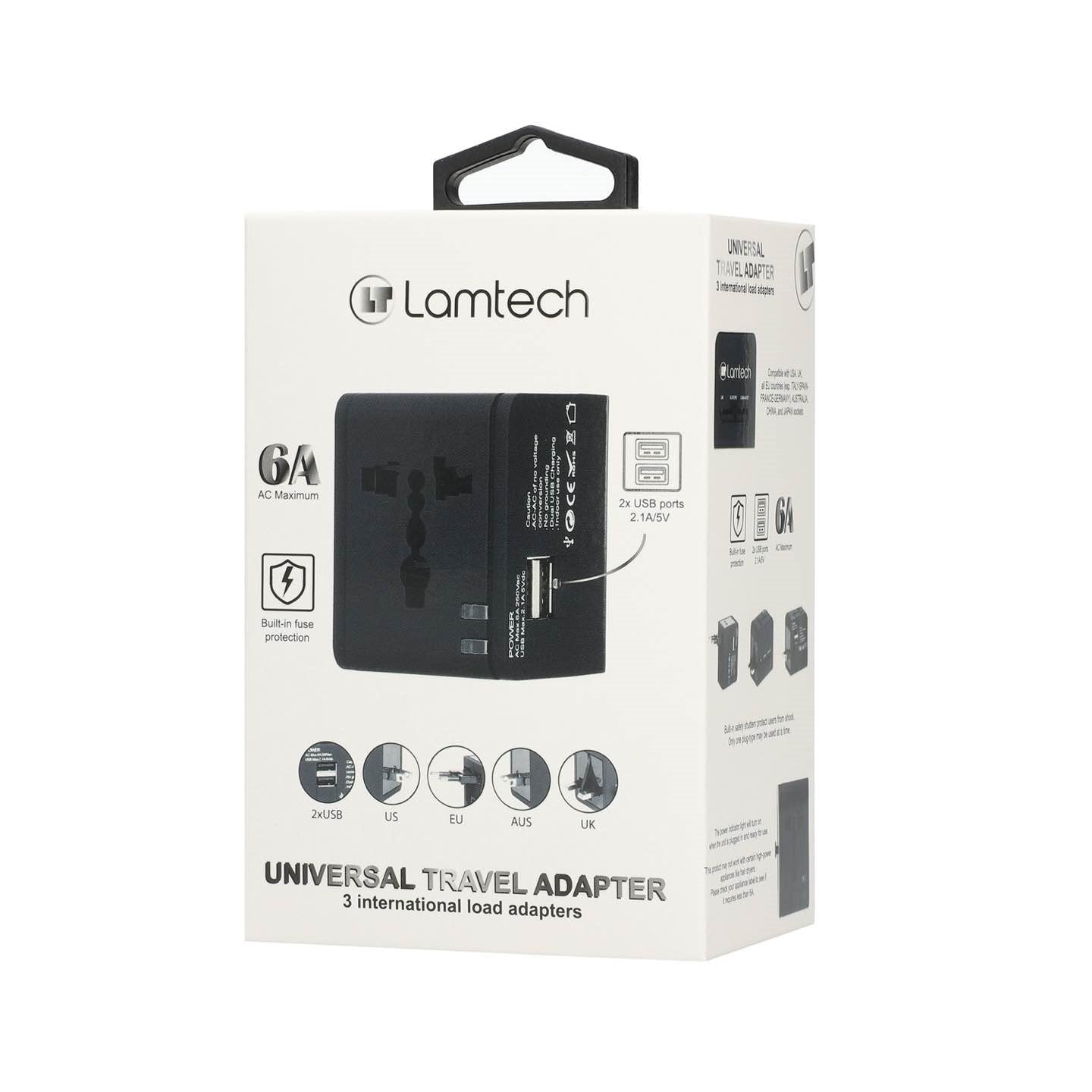 Lamtech Universal Travel Adapter With 2 Usb Ports Ac 6 A Black