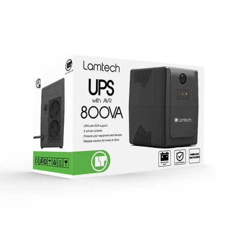 Σταθερή ισχύς, μέγιστη προστασία! Το LAMTECH UPS 800VA με AVR (Αυτόματη Ρύθμιση Τάσης) προστατεύει τις συσκευές σας από διακυμάνσεις ρεύματος, διακοπές και υπερτάσεις, εξασφαλίζοντας απρόσκοπτη λειτουργία.