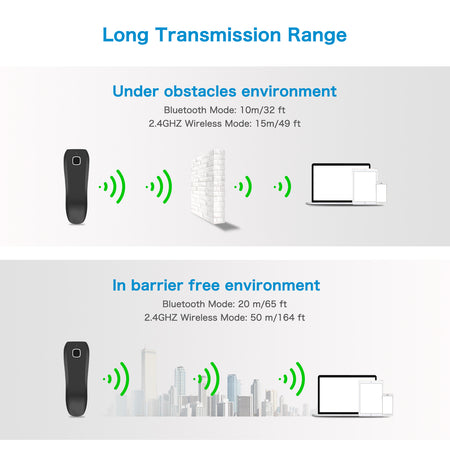 Ευέλικτη 3-σε-1 Σύνδεση: Αυτός ο σαρωτής προσφέρει τρεις επιλογές σύνδεσης: Bluetooth, 2.4G ασύρματη σύνδεση και ενσύρματη σύνδεση. Συνδέεται εύκολα με διάφορες συσκευές, όπως φορητούς υπολογιστές, υπολογιστές, κινητά τηλέφωνα, tablet, iPhone, iPad και συστήματα POS. Συμβατό με Windows XP/7/8/10, Mac OS, Windows Mobile, Android και iOS.