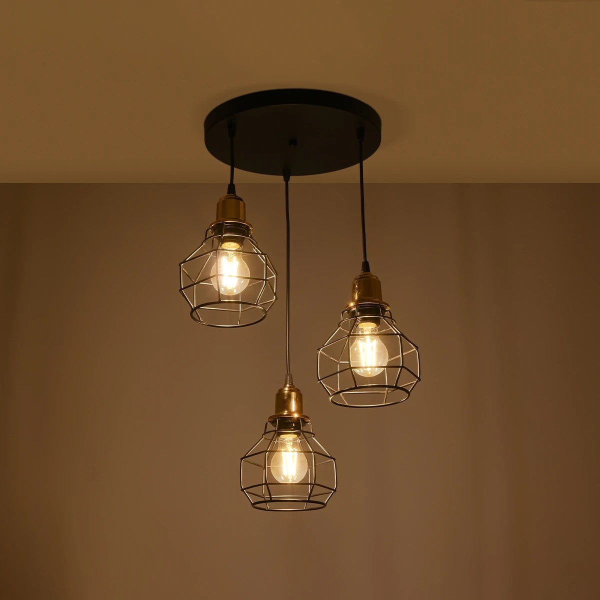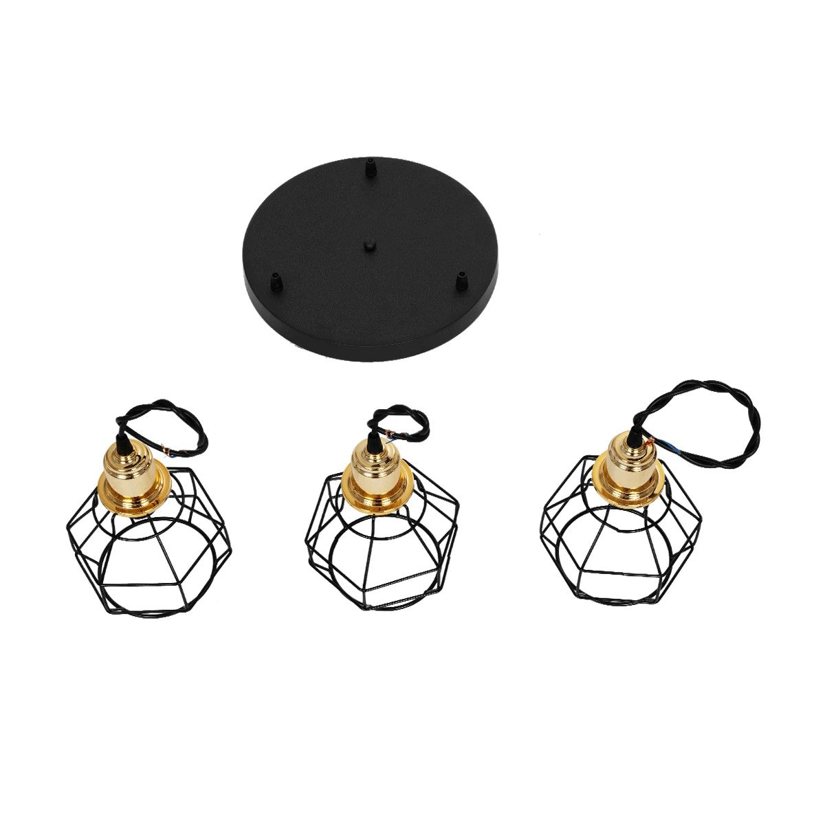 GLOBOSTAR® NOVARAY 201-0083 Vintage Κρεμαστό Φωτιστικό Οροφής με Ντουί 3 x E27 AC 220-240V IP20 - Μαύρο & Χρυσό - Μ40 x Π40 x Υ50cm