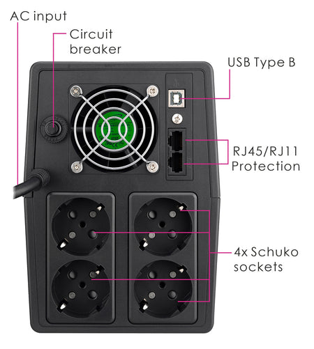 -έξοδος: 4x Schuko, 2x RJ45/RJ11, 1x USB Type B