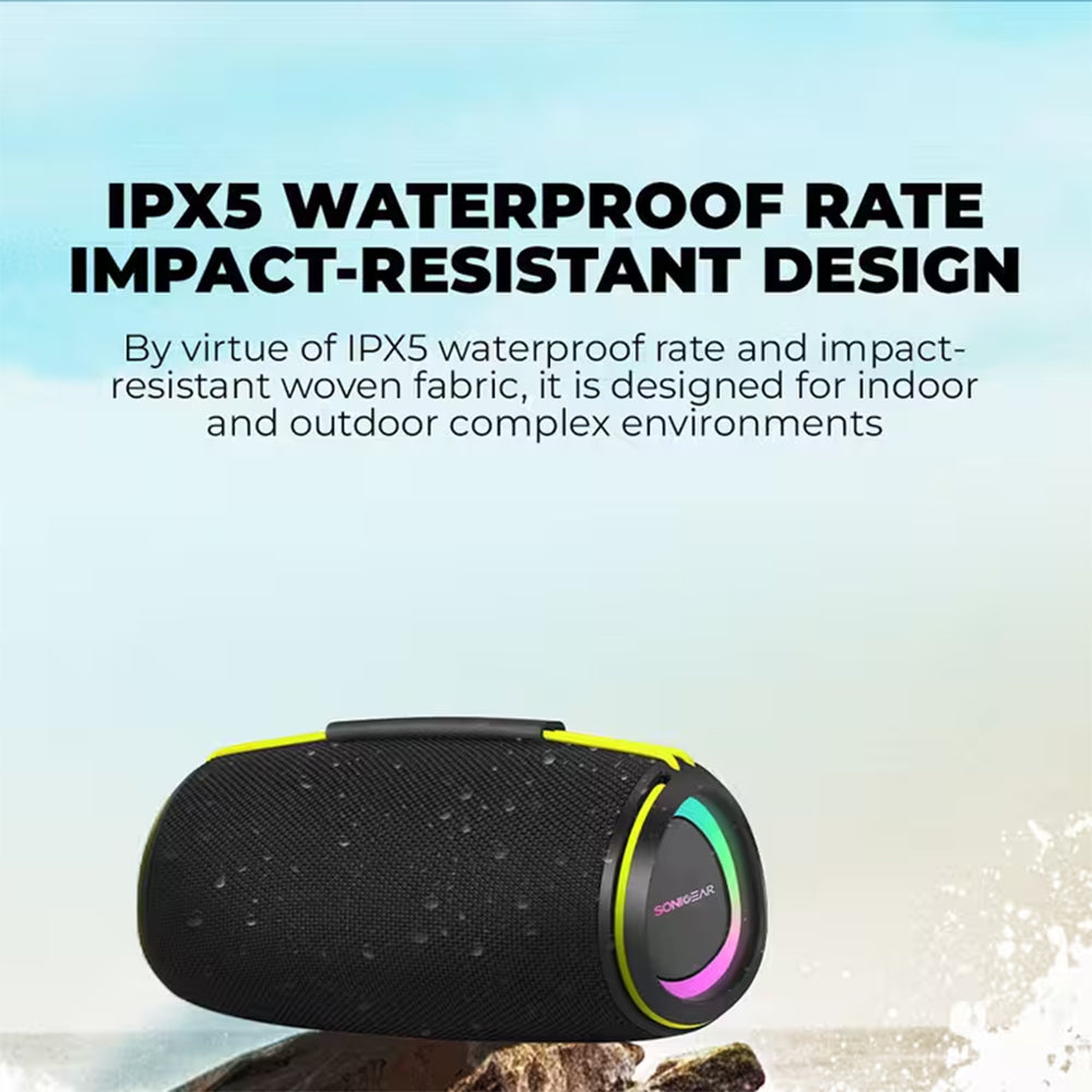 Το SonicGear SonicGo! Boom 6 είναι ένα ισχυρό φορητό Bluetooth ηχείο σχεδιασμένο για χρήστες που απαιτούν δυνατό ήχο, έντονο μπάσο και αντοχή σε εξωτερικές συνθήκες. Με συνολική ισχύ 30W, διπλούς οδηγούς 66mm και Dual Bass Diaphragm, προσφέρει γεμάτο και καθαρό ήχο, ιδανικό για πάρτι, εξωτερικούς χώρους και απαιτητική ακρόαση.