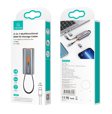 Πολυλειτουργικός αντάπτορας για φόρτιση και μεταφορά δεδομένων της Usams, με υποστήριξη γρήγορης φόρτισης PD, με απόδοση έως 60W.