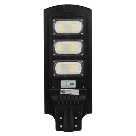 GloboStar® 71552 Αυτόνομο Ηλιακό Φωτιστικό Δρόμου Street Light LED SMD 150W 12000lm με Ενσωματωμένη Μπαταρία Li-ion 9000mAh - Φωτοβολταϊκό Πάνελ με Αισθητήρα Ημέρας-Νύχτας PIR Αισθητήρα Κίνησης Αδιάβροχο IP65 Ψυχρό Λευκό 6000K