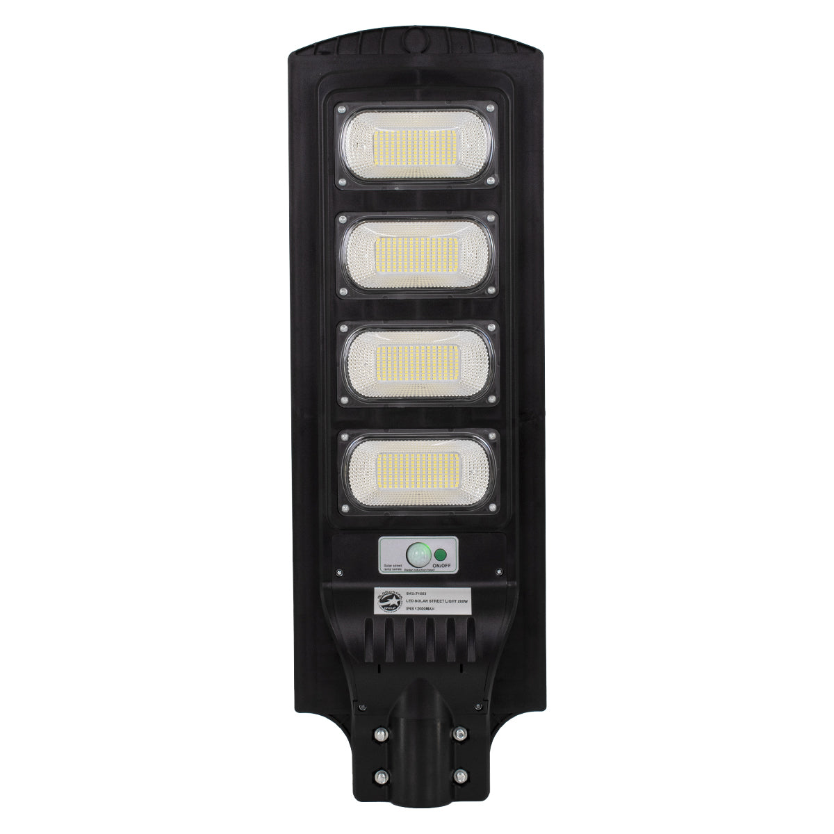 GloboStar® 71553 Αυτόνομο Ηλιακό Φωτιστικό Δρόμου Street Light LED SMD 200W 16000lm με Ενσωματωμένη Μπαταρία Li-ion 12000mAh - Φωτοβολταϊκό Πάνελ με Αισθητήρα Ημέρας-Νύχτας PIR Αισθητήρα Κίνησης Αδιάβροχο IP65 Ψυχρό Λευκό 6000K