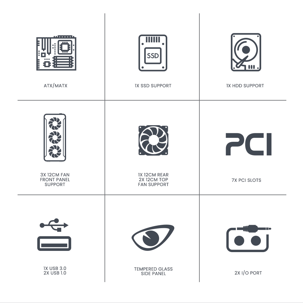• Θάλαμος PSU: Υποστηρίζει 2 x 120mm Ανεμιστήρες (Ανεμιστήρες και Ψυγείο δεν περιλαμβάνονται)