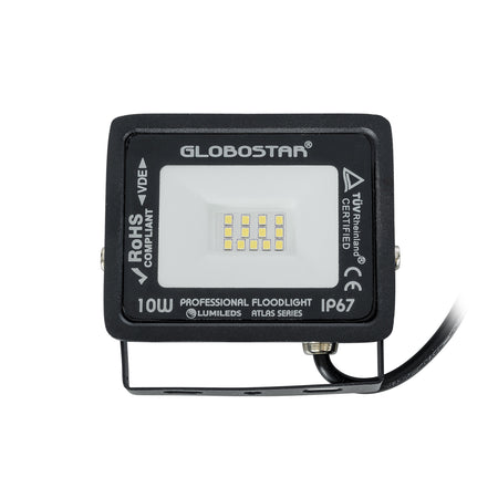 GLOBOSTAR® ATLAS 61515 Προβολέας LED 10W 1250lm 120° AC 220-240V Αδιάβροχο IP67 Ψυχρό Λευκό 6000K - Lumileds SMD Chip - TÜV Rheinland Certified - Μαύρο Ματ - Μ10 x Π2. x Υ8cm - 5 Χρόνια Εγγύηση
