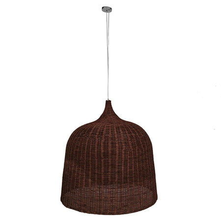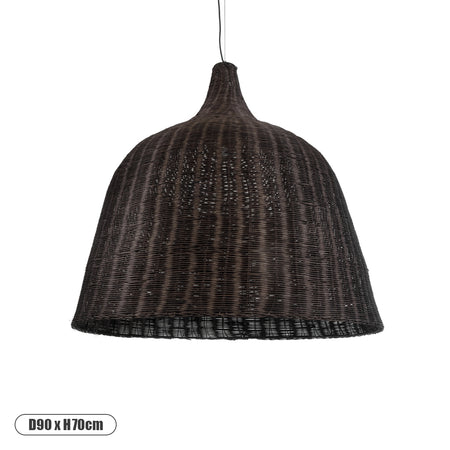 GloboStar® BAHAMAS 01569 Vintage Κρεμαστό Φωτιστικό Οροφής Μονόφωτο Καφέ Σκούρο Ξύλινο Ψάθινο Bamboo Φ90 x Υ90cm
