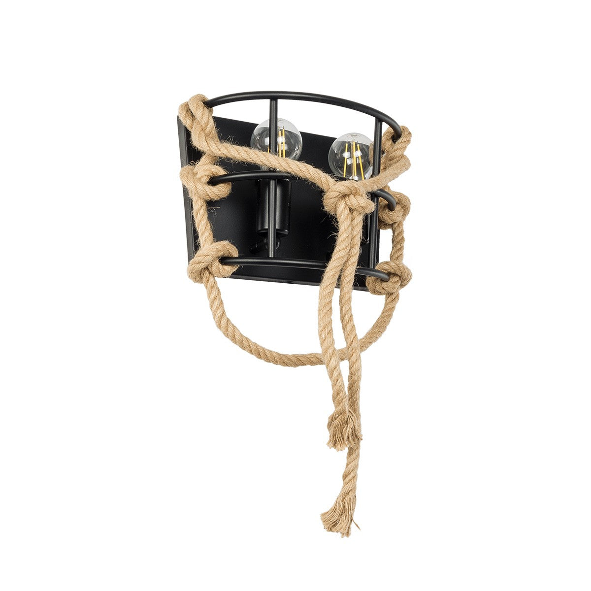GloboStar® BARBOSA 01083 Vintage Industrial Φωτιστικό Τοίχου Απλίκα Δίφωτο Μαύρο Μεταλλικό Πλέγμα με Μπεζ Σχοινί Μ12 x Π19 x Υ28cm