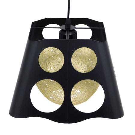 GloboStar® CARTER 00962 Μοντέρνο Industrial Κρεμαστό Φωτιστικό Οροφής Μονόφωτο Μαύρο με Εκρού Μεταλλικό Πλέγμα Μ28 x Π28 x Υ22cm