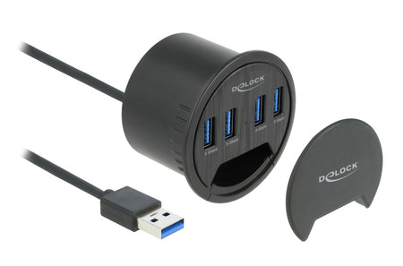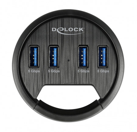 DELOCK USB hub 64153, 4x θυρών, 5Gbps, Φ60mm, USB σύνδεση, μαύρο