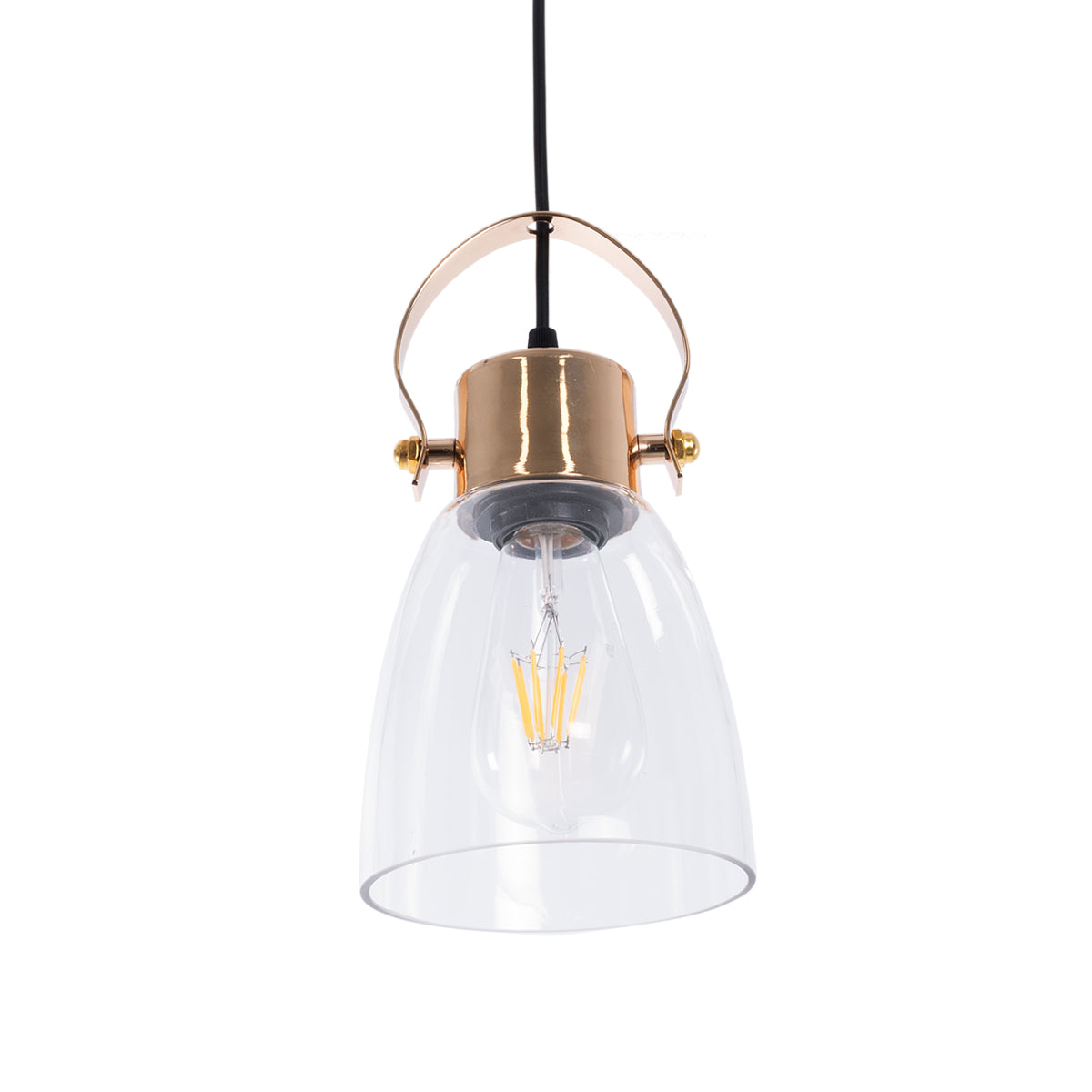 GLOBOSTAR® JAVER 00934 Vintage Κρεμαστό Φωτιστικό Οροφής με Ντουί 1 x E27 AC 220-240V IP20 - Διάφανο & Ροζ Χρυσό - Μ14.5 x Π14.5 x Υ28cm