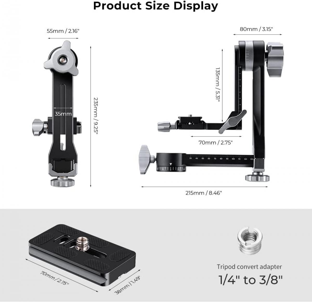 Υψηλή συμβατότητα: Το κάτω μέρος της κεφαλής του τριπόδου του gimbal έχει μια οπή βίδας 3/8 ιντσών, μπορεί να εφαρμοστεί ευρέως σε διάφορα επαγγελματικά τρίποδα. και έρχεται επίσης με αφαιρούμενη πλάκα γρήγορης απελευθέρωσης με βίδα 1/4 ιντσών, η οποία είναι κατάλληλη για κάμερες SLR, DSLR, Mirrorless.