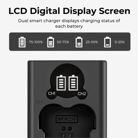 100% συμβατό με κάμερες Fujifilm που χρησιμοποιούν NP-W235, όπως Fujifilm X-T5, X-T4, GFX 50S II, GFX 100S, X-H2S Κάμερες κ.λπ.