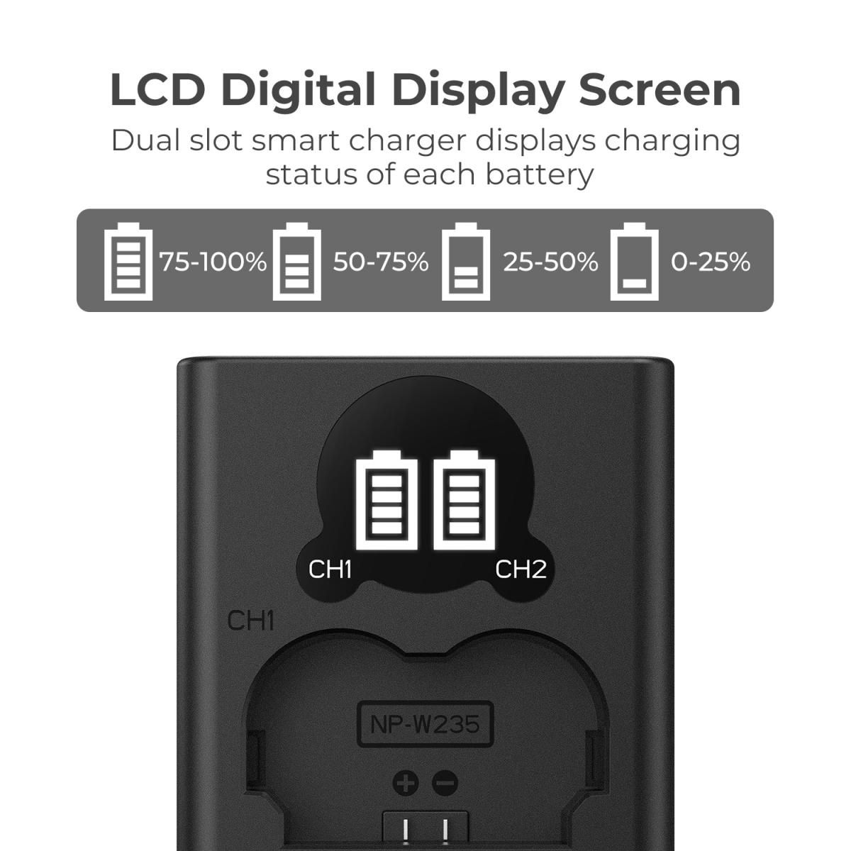 100% συμβατό με μπαταρίες κάμερας NP-W235, όπως X-T5, X-T4, GFX 100S, X-H2S, GFX 50S II, VG-XT4 Κάμερες κ.λπ.