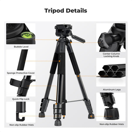 Κάνει το τρίποδο πιο σταθερό κατά τη λήψη σε εξωτερικούς χώρους. Η κεφαλή του τριπόδου μπορεί να φορτίσει έως και 4 κιλά, υποστηρίζει οριζόντια περιστροφή 360°, ρυθμιζόμενη γωνία κλίσης +100°/-70°, η πλάκα γρήγορης απελευθέρωσης μπορεί να ληφθεί οριζόντια, για να καλύψει τις ανάγκες λήψης από πολλαπλές γωνίες.