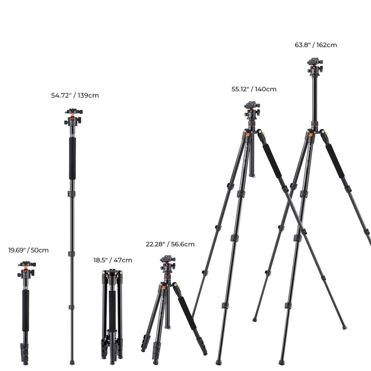 K&F Concept TM2324 Lightweight Travel Tripod Aluminum with 360 Ball Head & Detachable Monopod (KF09.111)
