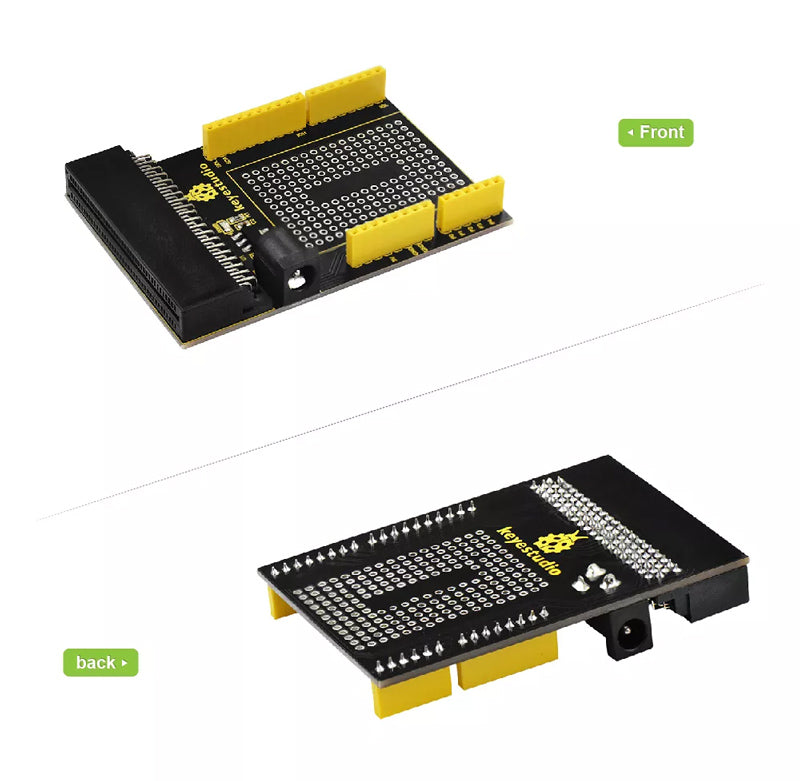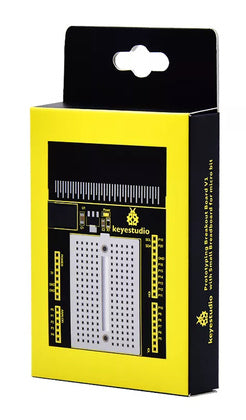 Prototyping breakout board V1 με small breadboard για Micro:bit από την Keyestudio. Αυτή η πλακέτα έχει σχεδιαστεί για να διευκολυνθεί η καλωδίωση της πλακέτας ανάπτυξης Micro:bit.