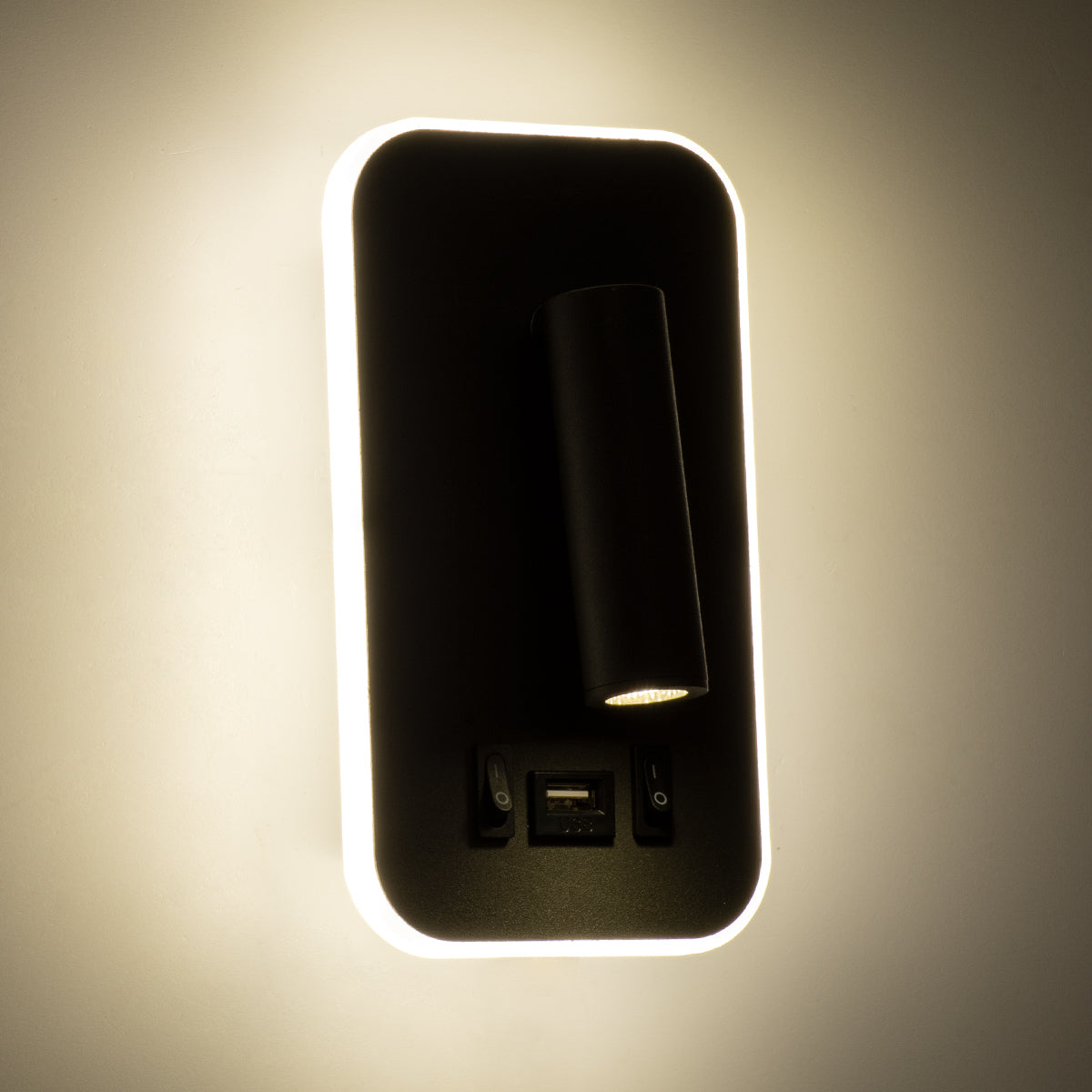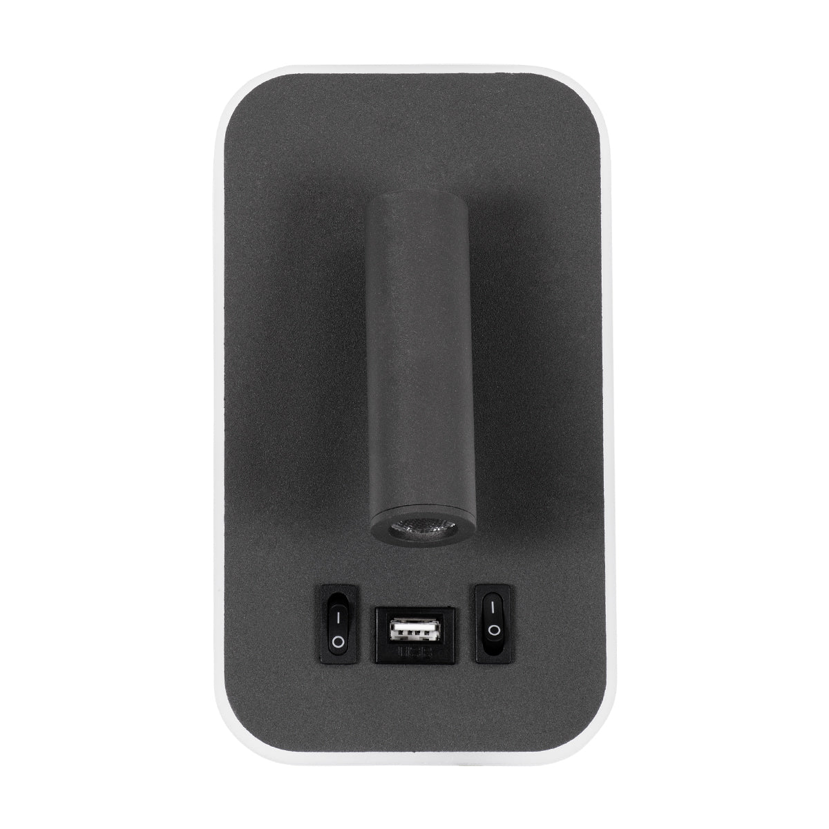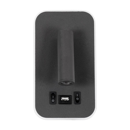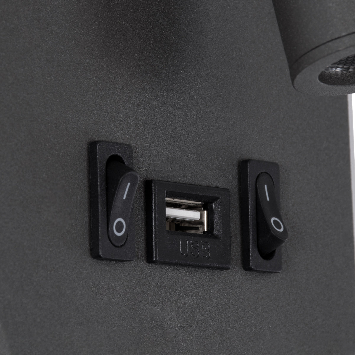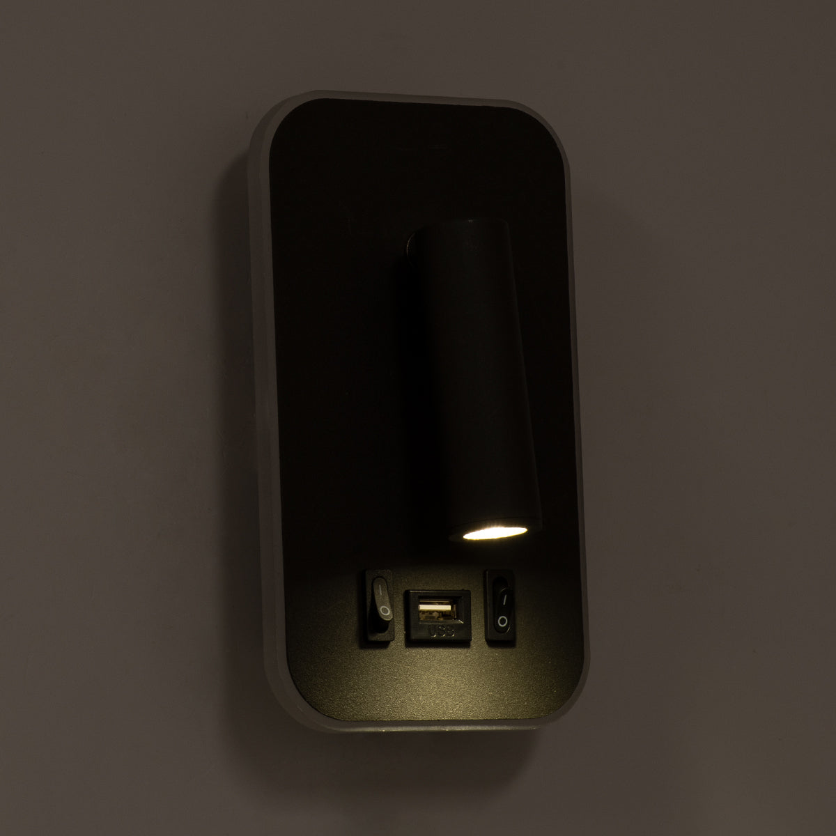 GLOBOSTAR® LADY-O 61365 Μοντέρνο Φωτιστικό Τοίχου - Απλίκα Ξενοδοχείου Reading Light με Φορτιστή USB 3A LED 10W 1000lm 36° & 360° AC 220-240V IP20 Φυσικό Λευκό 4500K - Bridgelux COB Chip & TÜV SÜD Driver - Γκρι Ματ - Μ10.5 x Π10 x Υ18.5cm - 3 Χρόνια Εγ...