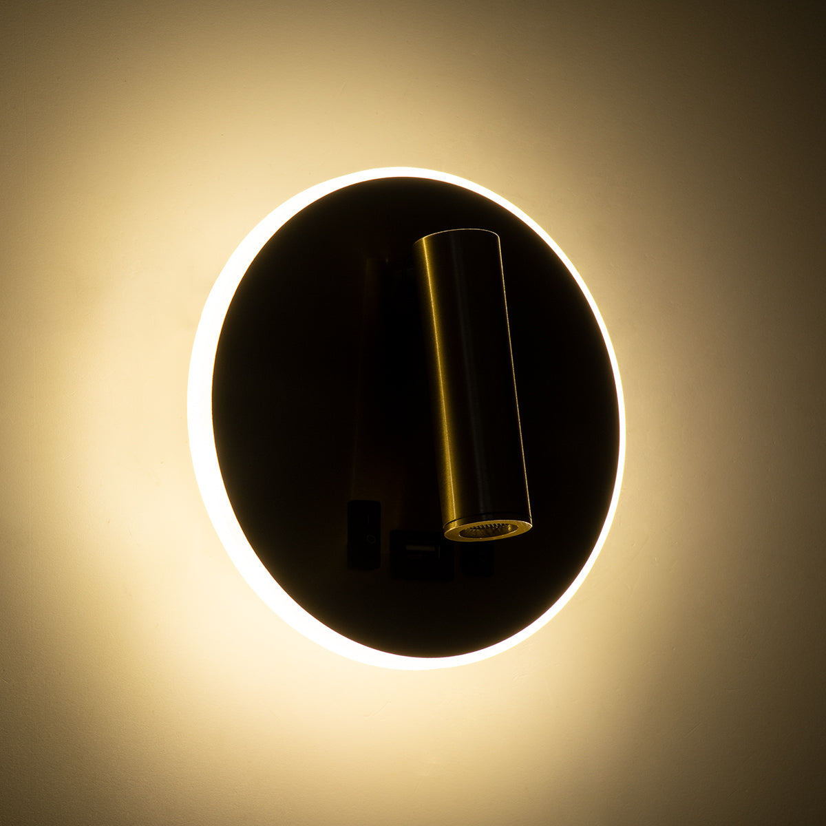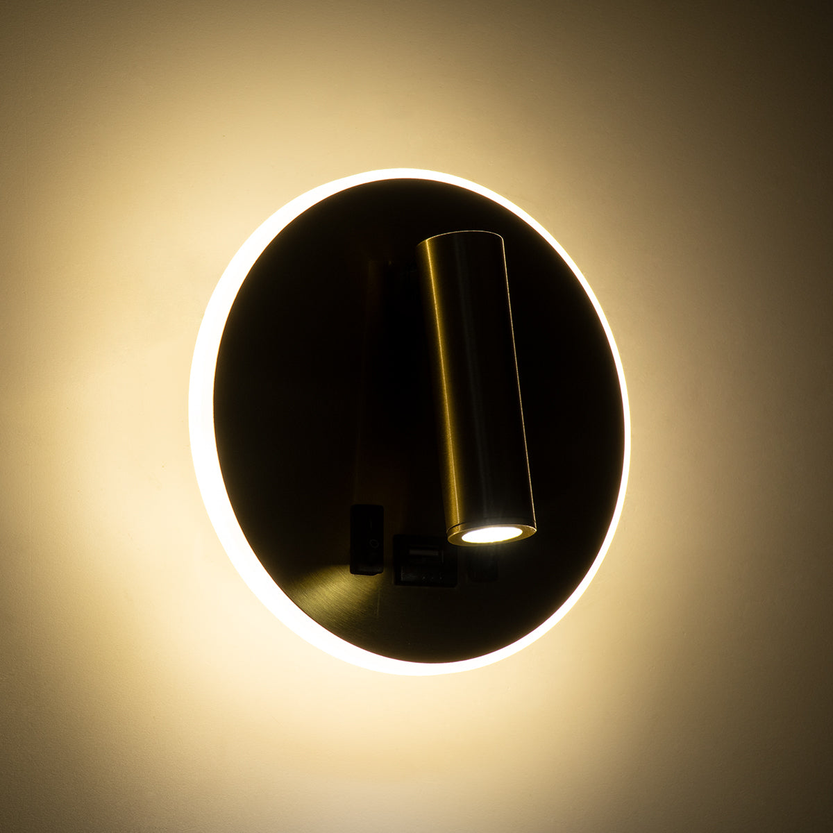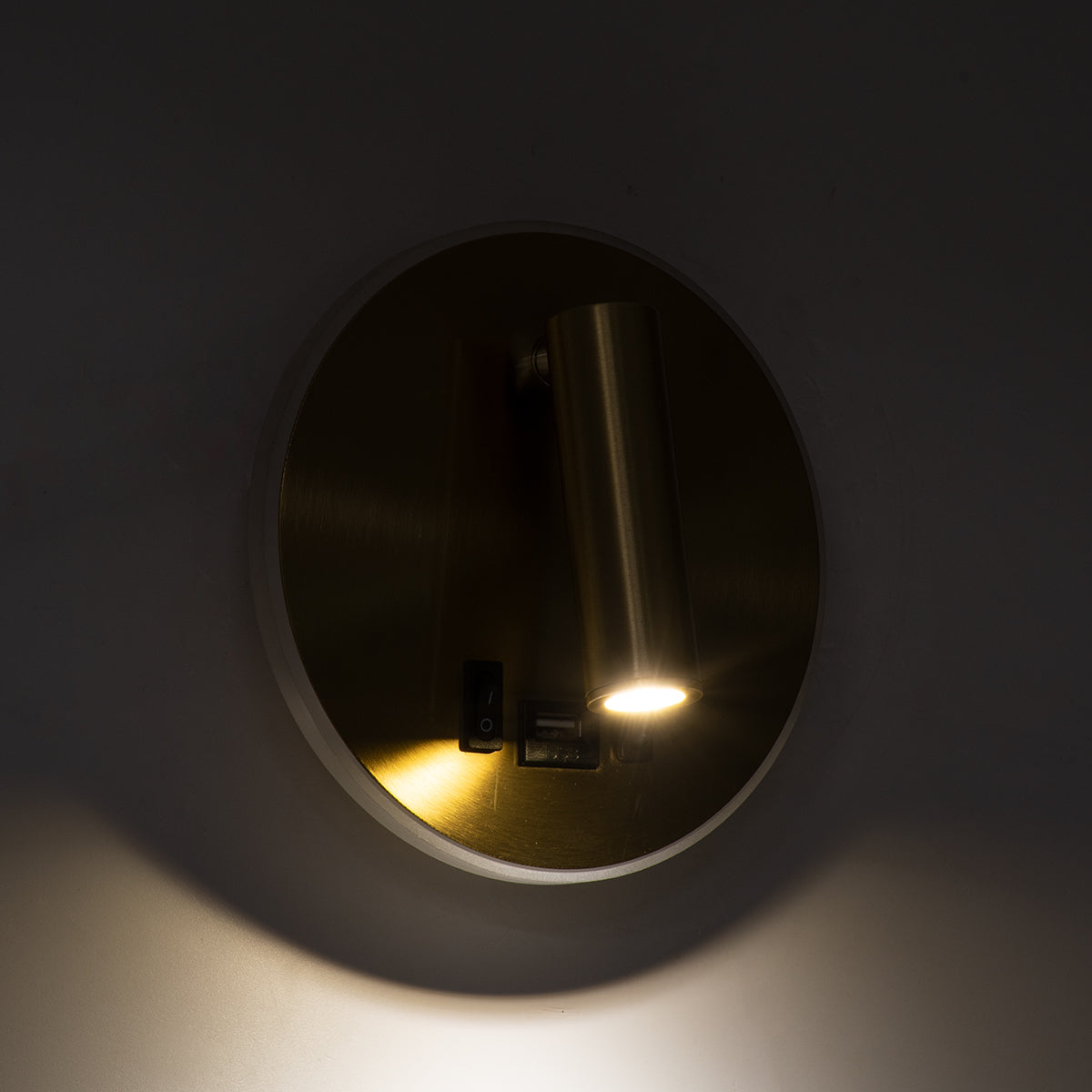 GLOBOSTAR® LADY-R 60940 Μοντέρνο Φωτιστικό Τοίχου - Απλίκα Ξενοδοχείου Reading Light με Φορτιστή USB 3A LED 6W 600lm 36° & 360° AC 220-240V IP20 Φυσικό Λευκό 4500K - Bridgelux COB Chip & TÜV SÜD Driver - Χρυσό Βούρτσας - Μ15 x Π15 x Υ17cm - 3 Χρόνια Εγ...