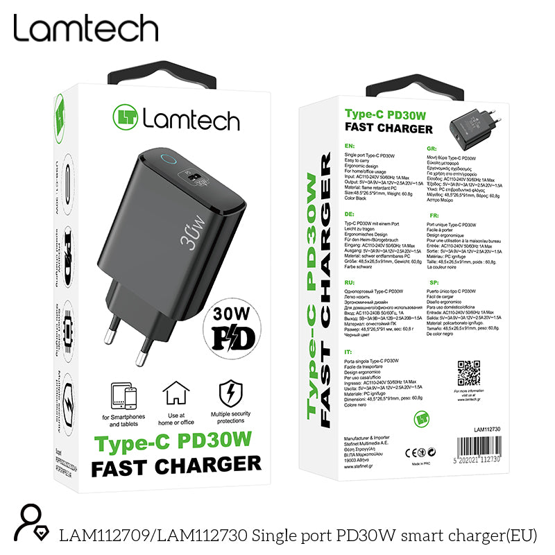 LAMTECH FAST CHARGER TYPE-C PD30W BLACK