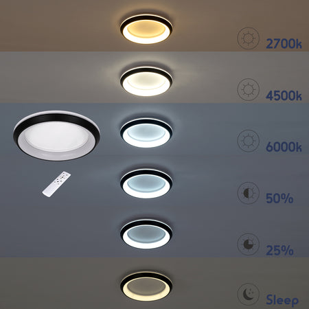 GLOBOSTAR® MELINA 61040 Μοντέρνο Φωτιστικό Οροφής LED 55W 6376lm 120° AC 220-240V IP20 Ρυθμιζόμενο Λευκό CCT με Χειριστήριο από 2700K έως 6000K Dimmable - Lumileds SMD Chip - Μαύρο Ματ - Μ48 x Π48 x Υ9cm - 3 Χρόνια Εγγύηση