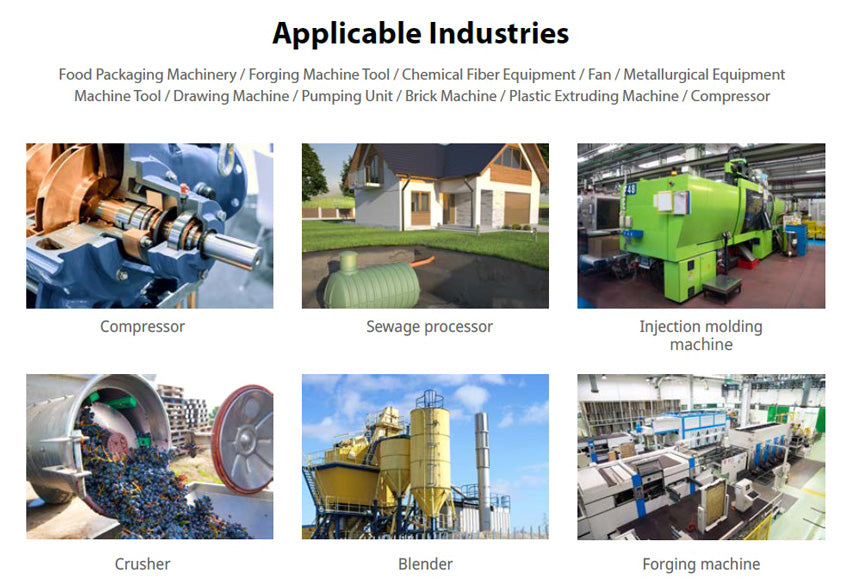 Η μονάδα VFD ρυθμιστής στροφών είναι κατάλληλη για μια ποικιλία βιομηχανικών εφαρμογών. Εφαρμόζει σε ηλεκτρικό, βιομηχανικό εξοπλισμό που διαθέτει κινητήρες, όπως εξοπλισμός κατασκευής, συμπιεστή, ανελκυστήρα κ.λπ. Το αξιόπιστο SVC vector control και η σταθερή ταχύτητα λειτουργίας του μπορούν να βελτιστοποιήσουν την απόδοση του κινητήρα και να επεκτείνουν τον κύκλο ζωής του. Προσφέρει ταχύτερη επιτάχυνση/επιβράδυνση, ταχύτερη αντίδραση στην αλλαγή φορτίου και προληπτική απόκριση κατά τη μείωση της ισχύος. Επιπλέον, είναι εξοπλισμένο με έναν μεγάλο αθόρυβο ανεμιστήρα, ο οποίος είναι αγώγιμος στην ταχεία διάχυση της θερμότητας.