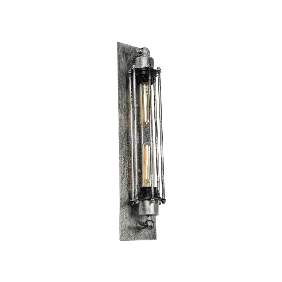 GloboStar® BESPOKE 01567 Vintage Industrial Φωτιστικό Τοίχου Απλίκα Δίφωτο Ασημί Σκουριά Μεταλλικό Πλέγμα Μ9.5 x Π10 x Υ47cm