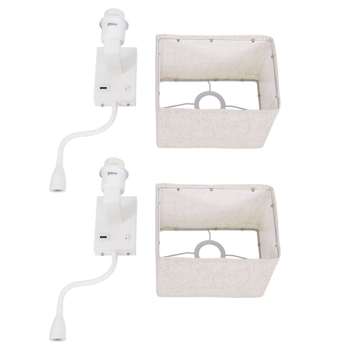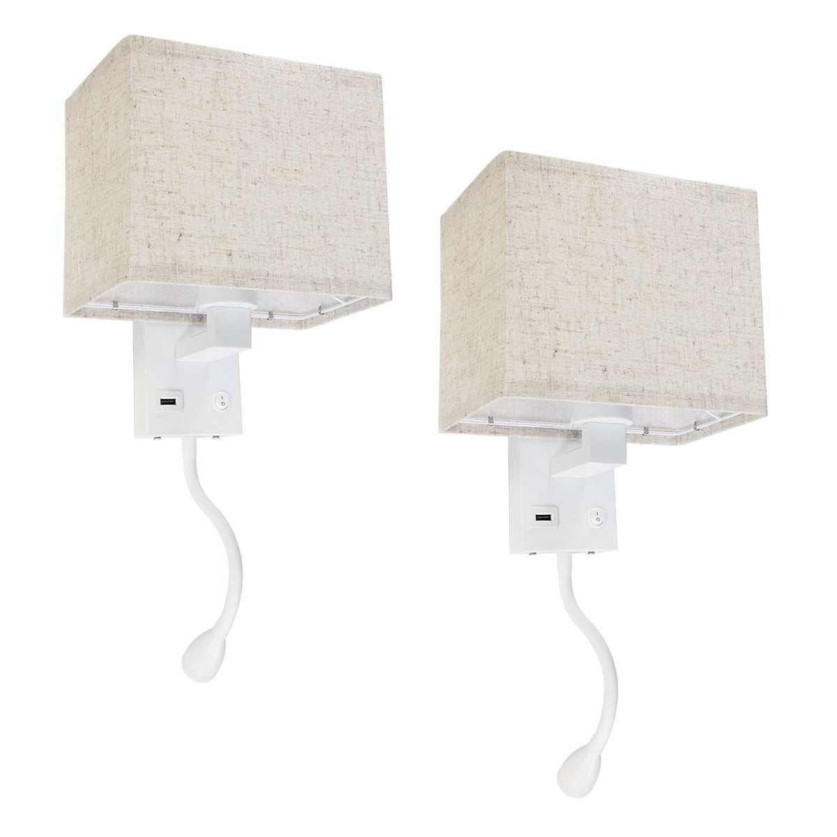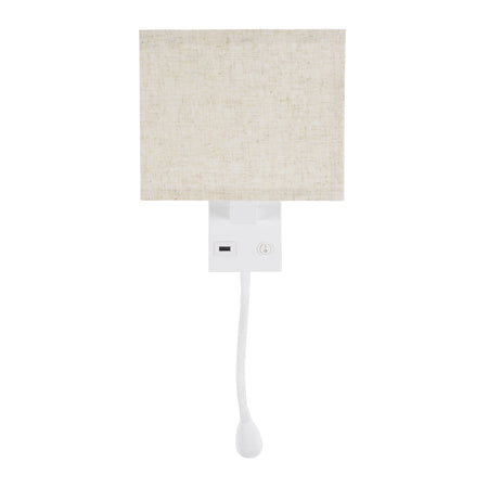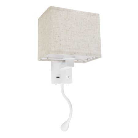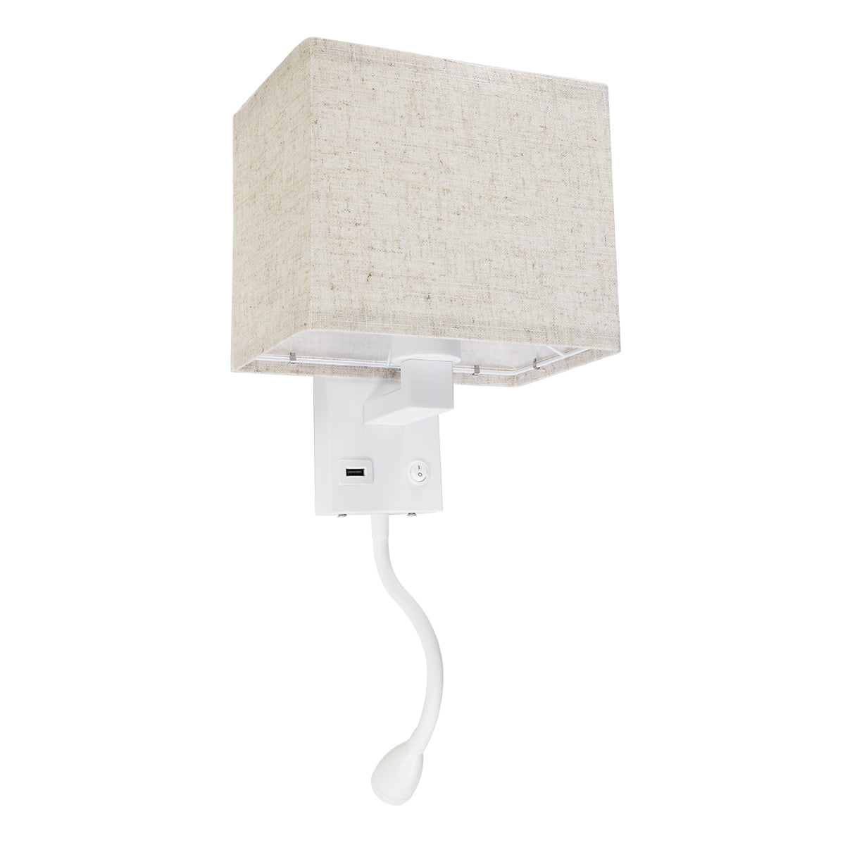 GLOBOSTAR® ROULETTE-S 61383 Μοντέρνο Φωτιστικό Τοίχου - Απλίκα Ξενοδοχείου Reading Light με Φορτιστή USB 3A & Ντουί 1 x E27 LED 3W 360lm 36° & 360° AC 220-240V IP20 Φυσικό Λευκό 4500K - Bridgelux COB Chip & TÜV SÜD Driver - Λευκό & Μπεζ - Μ17 x Π20 x Υ...