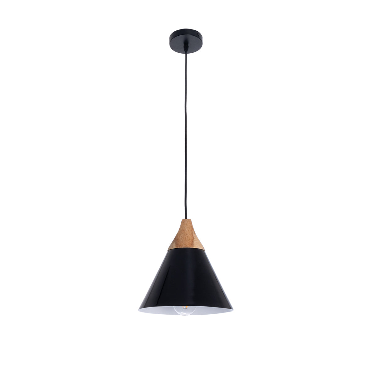 GloboStar® SHADE 00906 Μοντέρνο Κρεμαστό Φωτιστικό Οροφής Μονόφωτο Μαύρο Μεταλλικό με Ξύλο Καμπάνα Φ23 x Υ22cm