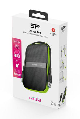 SILICON POWER εξωτερικός HDD Armor A60, 2TB, USB 3.2, πράσινος