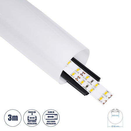 GLOBOSTAR® ALP-ROUND TUBIT 70856-3M Επιφανειακό & Κρεμαστό Προφίλ Αλουμινίου με Λευκό Γαλακτερό Πατητό Κάλυμμα για Ταινίες LED IP20 - Μαύρο & Λευκό - Μ300 x Π6 x Υ6cm