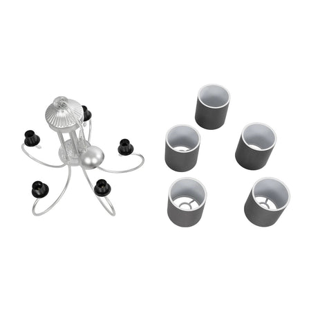 GLOBOSTAR® TRITON 203-0255 Vintage Κρεμαστό Φωτιστικό Οροφής με Ντουί 5 x E27 AC 220-240V IP20 - Ασημί & Γκρι - Μ50 x Π50 x Υ48cm