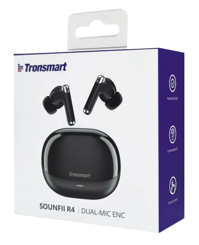Τα true wireless earphones Sounfii R4 της Tronsmart προσφέρουν κορυφαία ποιότητα ήχου και άριστη εφαρμογή στο αυτί. Είναι συμβατά με tablets, smartphones και άλλες συσκευές που διαθέτουν Bluetooth.