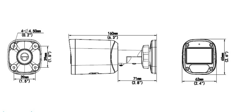 DORI Distance: Lens: 2.8mm, Detect: 63m, Observe: 25.2m, Recognize: 12.6m, Identify: 6.3m