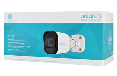 Δικτυακή κάμερα της Uniarch (Powered by Uniview Tech), με αισθητήρα ανάλυσης 4MP, φακό 2.8mm και εύρος υπέρυθρων IR έως 30m. Υποστηρίζει τροφοδοσία PoE και εξοπλίζεται με εσωτερικό μικρόφωνο για μεταφορά ήχου. Το σώμα της κάμερας είναι κατασκευασμένο από ανθεκτικό υλικό με στεγανοποίηση επιπέδου IP67, γεγονός που την καθιστά κατάλληλη για χρήση σε εξωτερικούς χώρους.