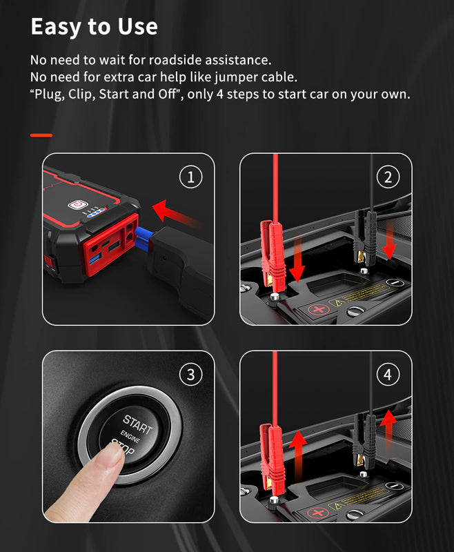 Φορητός εκκινητής μπαταρίας αυτοκινήτου Jstar One κατάλληλος για οχήματα έως 8lt βενζίνης και έως 6.5lt diesel.