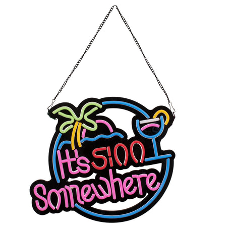 GloboStar® 85853 Φωτιστικό Ταμπέλα Φωτεινή Επιγραφή NEON LED Σήμανσης ITS 5:00 SOMEWHERE 30W AC 230V με Διακόπτη On/Off Ροζ - Γαλάζιο - Κίτρινο - Πράσινο - Κόκκινο