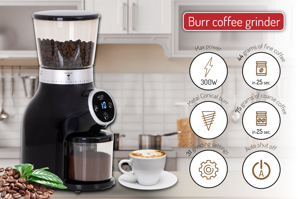 31 Ρυθμίσεις Άλεσης: Προσφέρει ποικιλία για διάφορες μεθόδους παρασκευής καφέ.