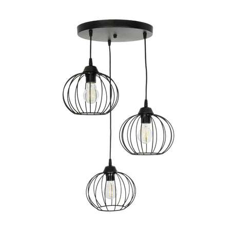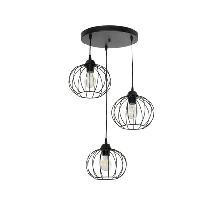 GLOBOSTAR® FLAMIA 201-0109 Vintage Κρεμαστό Φωτιστικό Οροφής με Ντουί 3 x E27 AC 220-240V IP20 - Μαύρο - Μ44 x Π44 x Υ66cm