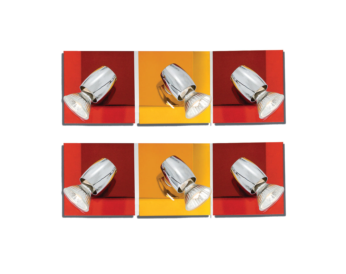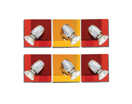 GU1094J-3B (x2) Colours Spot Packet Chrome metal rotating spot with decorative red and yellow g