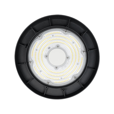 GLOBOSTAR® INDUSTRY 61501 Βιομηχανικό Φωτιστικό Καμπάνα High Bay UFO LED 150W 22500lm 90° AC 220-240V Αδιάβροχο IP65 Φυσικό Λευκό 5000K - Sanan Opto SMD Chip & TÜV SÜD Driver - Μαύρο Ματ - Μ26.5 x Π26.5 x Υ15cm - 5 Χρόνια Εγγύηση