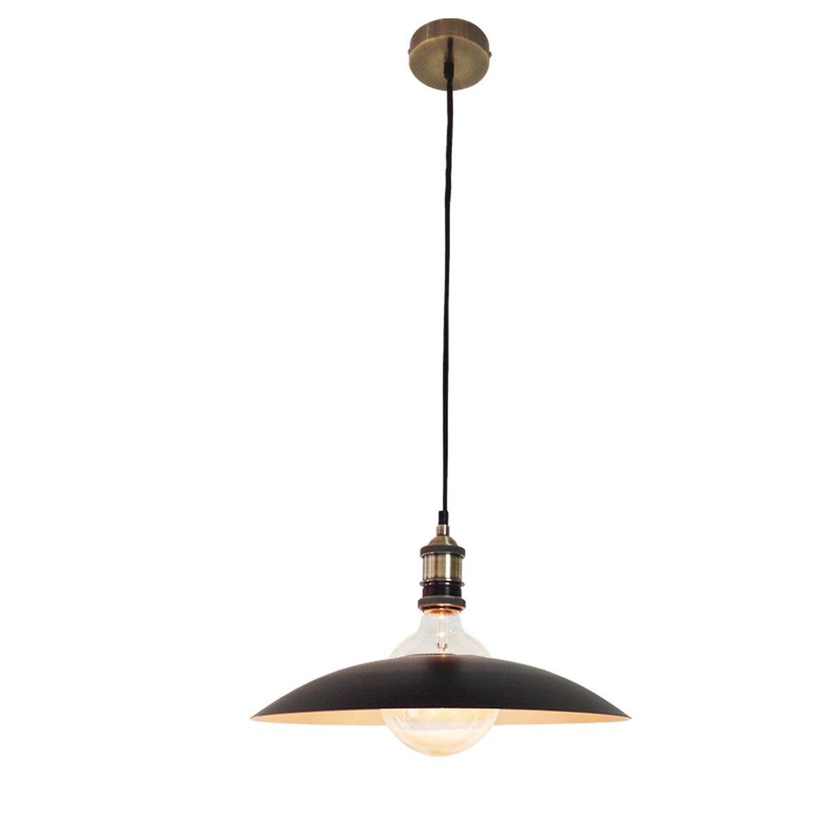 Μεταλλικό καπέλο εξωτερικά μαύρο, εσωτερικά λευκό με μαύρο υφασμάτινο καλώδιο, μπρονζέ ντουί και ροζέτα.